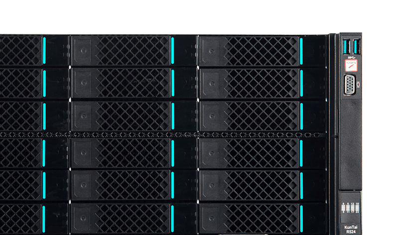 KunTai R524 存储型服务器是彩霸王数码基于鲲鹏处理器推出的新一代 ARM数据中心服务器。。。主要面向存储业务,,,,具有海量存储、、高性能、、、低功耗以及易扩展的特点,,,适合为大数据分析、、、、软件定义存 储等应用场景的工作负载进行髙效加速。。